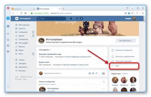 - Переходим на страницу сообщества, в котором вы имеете права администратора. Нужно будет кликнуть по значку в виде шестеренки, расположенном в правой верхней части экрана.