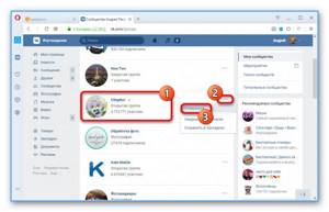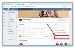 - Откройте начальную страницу нужной группы на веб-сайте ВК и в меню справа разверните список «Еще».